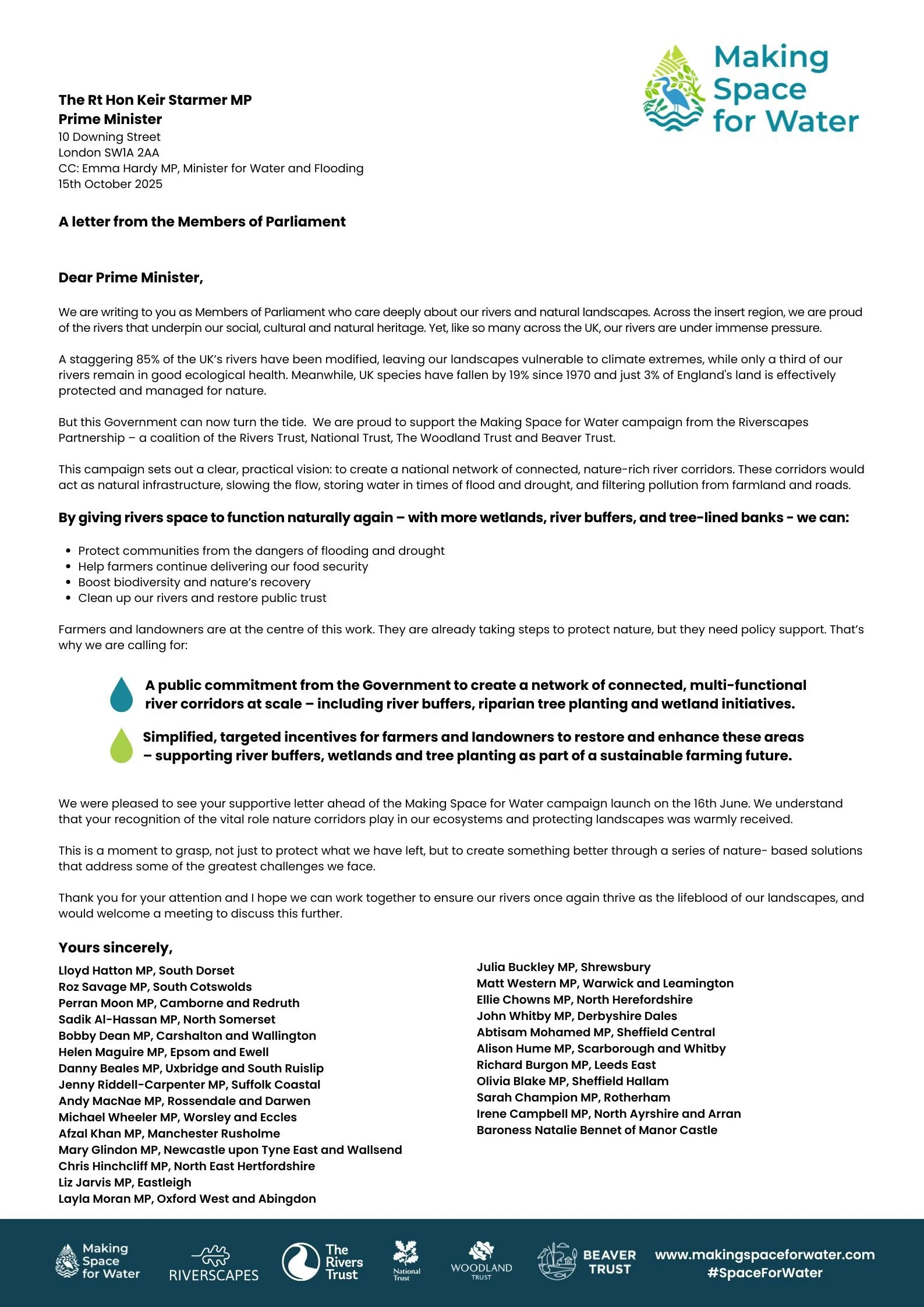 25 MPs have signed a letter to the Prime Minister, which we’re delivering directly to No.10 on 15th October 2025